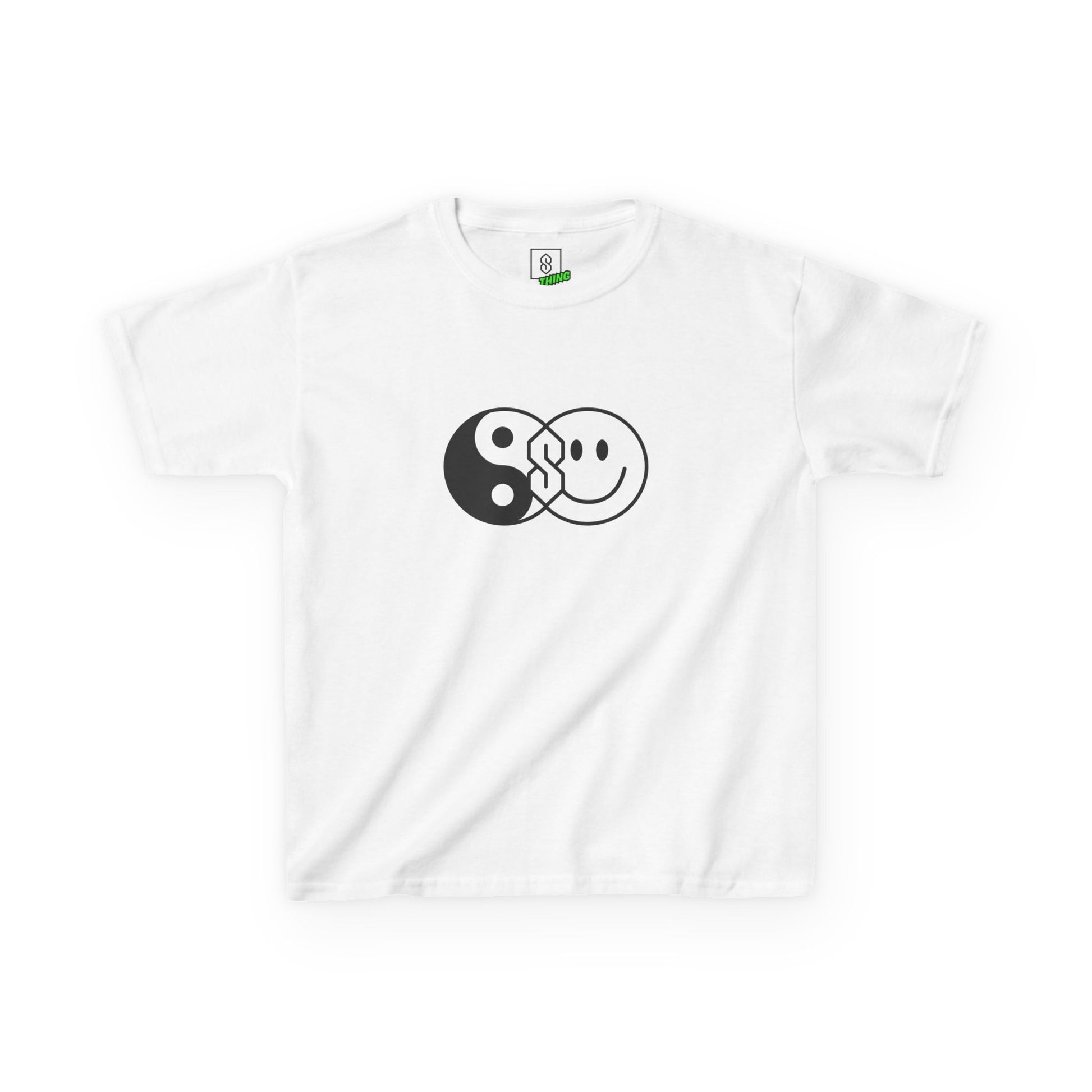 This tee fuses three OG icons into one bold front print: the Super S, the Yin Yang, and the forever-smiley.